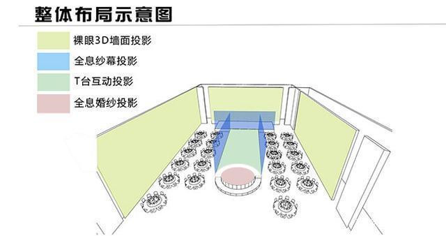 T臺互動投影通過270度投影,再結合全息投影,為婚禮增添新奇夢幻的效果,更加有沉浸式的氛圍,是達到沉浸式效果的重要組成部分。