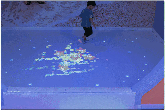 在商場或學前教育等場景下,互動投影為孩子們提供了十分趣味的游樂形式。打造虛擬的場景,配以美輪美奐的畫面,天上的小鳥,地上的魚群,都能和小朋友互動起來。